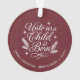 Cute Christmas keepsake ornament featuring the words "My First Christmas" between snowflakes and your favorite photo of your precious newborn (on the front) and beautiful typography (on the back) which reads "Unto Us a Child is Born". Tip: Change the burgundy red text and background colors to match your photo.