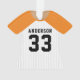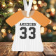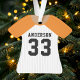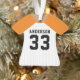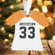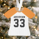 Celebra tu estrella de béisbol con este adorno personalizado de naranja y jersey de pinstripe blanco. Perfecto para conmemorar una temporada especial, jugador o equipo. Personalizar con un nombre y un número para crear un keepsake único.