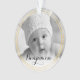 Celebre las vacaciones mágicas y festivas con los primeros ornamentos de la foto del navidad de nuestro bebé de encargo. Nuestras características del diseño modernas del día de fiesta un placeholder grande de la foto en el frente para la foto de su bebé. Una línea doble frontera del falso oro elegante añade una mirada elegante. El nombre del bebé exhibido en el frente sobre la foto. El dorso ofrece un fondo negro con una tipografía elegante hermosa "bendición" del estilo de la escritura exhibida en falso oro. El nombre completo del bebé y la fecha de nacimiento se arreglan maravillosamente para un ornamento verdad personalizado. Todas las ilustraciones contenidas en este ornamento moderno de la foto del navidad del bebé del negro y del oro primer son ilustraciones originales a mano por Moodthology. Usted puede modificar el tamaño del texto, el color de texto, la fuente y la disposición para requisitos particulares para su propia preferencia personal del diseño.