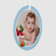 Navidades amables Elf y foto Personalizado en ornamento azul claro. ¡Puedes añadir tu foto favorita! ¡Bien para todas las edades!