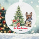 Celebra tu primera Navidad con este adorable adorno de acuarela. Con un perro Yorkie juguetón sosteniendo un zapato en la boca, parado al lado de un bello árbol de Navidad rodeado de regalos, este encantador ilustracion capta la alegría y las travesuras de la temporada de fiestas. El texto "Nuestra primera Navidad" se sienta encantadoramente por encima de la escena, lo que lo hace el conservador perfecto para marcar este momento especial. En la parte de atrás, un dulce mensaje de "te amo" agrega un toque personal, haciendo de este adorno un tesoro sentido en los años venideros. ¡Ideal para los amantes del perro y para cualquiera que aprecie su primera Navidad en pareja o en familia! Haga clic en Personalizar esta plantilla para agregar al instante los detalles de su perro. © Copyright Soar en diseños de estilo. Todos Los Derechos Reservados.