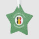 Decoración navidad con un ángel vestido con la bandera belga en un adorno en forma de estrella para las vacaciones. El ángel belga vuela dentro de un círculo de plazas blancas, rodeadas por un fondo de cuadrados verdes y sarcásticos para los Navidades. Para personalizar, agregue un nombre. Para el personalizar, añádase un año. O bien, agrega tu propio texto.