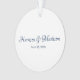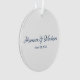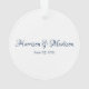 Nombre de la pareja Personalizado y Boda de fecha personalizado o adorno de Navidad. Diseño elegante, clásico y minimalista. Azul marino y blanco