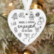 ¡Celebra tu compromiso con un toque festivo de fantasía! Este adorno de cerámica cuenta con detalles juguetones dibujados a mano y encantadores elementos de diseño que lo convierten en el lugar perfecto para sus primeras vacaciones como pareja comprometida. Una manera dulce y elegante de marcar este alegre hito en tu árbol de Navidad.