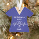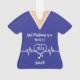 Primera Navidad personalizada como un adorno de enfermera con un matorral azul y un ilustracion estetoscopio. Personalizar con nombre y año. Cambie los colores de la piel y el uniforme haciendo clic en el botón para editar el diseño.