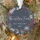 Navidades diseñados por personalizados con ornamentos de fotos con vegetación de invierno y bayas coronadas con nombres personalizados, año y foto.