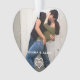 Celebra a estos Navidades junto con este hermoso adorno de dos fotos navideñas. Cuenta con un hermoso texto en la parte delantera con sus nombres y año, junto con dos fotos de la feliz pareja!