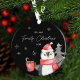 Añada un toque lindo a la celebración de sus vacaciones familiares con este adorable adorno de pingüino. El adorno navideño tiene un adorable pingüino con sombrero de Santa y bufanda y una taza de cacao caliente con malvaviscos y un bastón de caramelo. En el fondo hay un árbol de nieve y copos de nieve. Añade tu apellido, el año y el texto Navidades familiares. El texto puede editarse según sus preferencias. Este adorno navideño es una gran manera personalizada de celebrar la temporada!