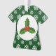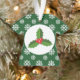 Este adorno navideño representa a un holly rodeado por un patrón de copos de nieve en un fondo verde. Es una agradable adición a los decorados de tus Navidades.