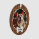 Este adorable adorno navideño de perro incluye un diseño adorable y estético agradable. Este diseño incluye un fondo de madera con nieve, un lugar en el centro para agregar una foto de tu perro, y un hueso hecho con lugares para agregar el nombre de tu perro y el año. ¡Disfrútalo!