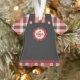 El vestido de plástico con pinante, adornado con botones de copo de nieve y encaje, presenta un diseño de copo de nieve en la parte delantera, mostrando el monograma y el nombre de tu ser querido. En la parte de atrás hay un pequeño "tatuaje" cardíaco de color rosa rubor, con la frase "Navidades 2018". El monograma, el nombre y todo el texto son totalmente editables; y también puede cambiar el estilo de fuente y los colores del texto. El color de fondo también es personalizable, para complementar la decoración.