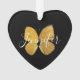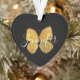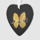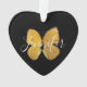 El ornamento navideño personalizado de la mariposa amarilla es un diseño moderno con una mariposa amarilla de gran tamaño centrada en el fondo negro del personalizable. Puede cambiar el fondo a cualquier color. El nombre está en la escritura manuscrita blanca de moda en el centro. El diseño está a ambos lados del adorno. ¡Idea de regalo perfecta para un amante de las mariposas o jardinero!
