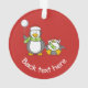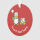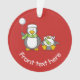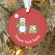 Un pequeño pingüino personalizado con bola de nieve y uno desmayado. Ambos llevan pañuelos verdes y sombreros de santa.