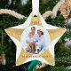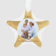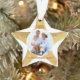 Esta estrella temática de la playa en forma de adorno navideño tiene una estrella de mar en un sencillo fondo blanco, con una foto redonda en el medio, y el nombre de la familia y el año. *Si necesitas ayuda con este diseño o productos a juego, por favor contacta conmigo a través de Zazzle.