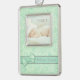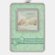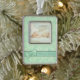 Este es un adorable y bonito adorable adorno de la plantilla de la primera Navidad para una niña o un niño. Incluye tu propia fotografía, con una imagen de arco verde menta y un cartel con el nombre de tu bebé. Un delicado giro floral de color verde pastel es el fondo de la pancarta de proa y nombre. ¡Qué lindo!