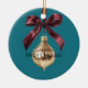 Adorno navideño de lazo verde azulado burgundy dorado