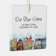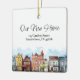 Celebre la alegría de un nuevo comienzo con este hermoso adorno de Navidad de cerámica, diseñado especialmente para agentes inmobiliarios para regalar como obsequios de cierre atentos y duraderos. Este adorno cuadrado presenta una encantadora ilustración de acuarela de un barrio suburbano a lo largo del borde inferior del lado frontal, lo que agrega calidez y encanto. Arriba, la frase "Nuestra nueva casa" está elegantemente escrita en una fuente cursiva moderna, mientras que el centro muestra la dirección personalizada de la propiedad, lo que la convierte en un recuerdo personal para la primera temporada de fiestas de sus clientes en su nuevo espacio.
