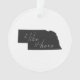 Comparta cuánto usted goza el ser un Nebraskan con un estado del ornamento del navidad de Nebraska que ofrece la forma del mapa de la silueta del esquema del estado del Cornhusker completado de un fondo negro sólido y la escritura blanca manuscrita que indica "yo tiene gusto de él aquí" que parece una pizarra que cuelga en su árbol estas vacaciones.