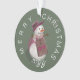 Decoren su árbol de Navidad con un adorable adorno de una mujer de nieve. Este diseño tiene una linda mujer de nieve en un delantal del centro con fondo verde y texto blanco. La fecha del año es personalizable. La nevada lleva un delantal marrón con bolsillos de corazón rosados y un gorra de color burdeos. Diseño de Ms_Jade.