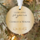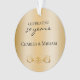 Crea un regalo personalizado de 50 años de boda dorado añadiendo los nombres de la pareja, la fecha de aniversario del boda y la fotografía a este adorno. Este degradado de oro falso no es un verdadero Relieve metalizado, sino un elegante tono dorado. Toda la tipografía moderna es editable. "Celebrar 50 años" puede ser editado si es necesario. Este sería el regalo de calidad perfecto para un aniversario dorado de 50 bodas. Se puede personalizar el acrílico Ornamento de Navidad con nombres, fecha y una fotografía de la pareja. El diseño único de rombo y remolinos dorados en la parte inferior es mi propio diseño creado para ti. Dale a tus padres, abuelos o seres queridos un hermoso regalo de 50 años de boda dorado. También sería un placer o un favor de fiesta para los invitados de un fiesta de aniversario boda.