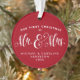 Este adorno de "Nuestra primera Navidad como Sr. y Sra." que presenta tipografía de escritura única y fecha y lugar en la parte de atrás es la manera perfecta de conmemorar a sus primeros Navidades casados. El color de fondo rojo se puede cambiar haciendo clic en "personalizar más adelante".