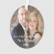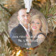 Nuestro primer ornamento de Boda de escritura moderna de Navidad. Moderno y elegante adorno navideño con una foto completa, Mr. y Mrs. y el año en el moderno guión blanco con copos de nieve blancos de diferentes tamaños. Personaliza el adorno con tu foto boda favorita, tu nombre y el año - haz tu propio y hermoso boda de primer Navidad o un regalo para tu familia y amigos.