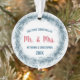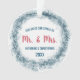 Celebrar las vacaciones juntos como una pareja casada con esta corona purpurina azul de los Navidades con texto de personalizable azul y rojo. Personalice este adorno vacacional con sus nombres y el año.