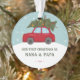 Celebre su primera Navidad como abuelos con este adorno de coche rojo que lleva un árbol de Navidad. Disfrute de este diseño único para un acento festivo en su árbol de Navidad. Es fácil de personalizar para que sea exclusivamente suyo.