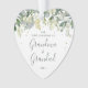 Las bayas de nieve pintadas a mano y los tallos de eucalipto forman un borde que cruza la parte superior de este adorno en forma de corazón. Todo el texto es totalmente editable, por lo que puede cambiar fácilmente la redacción y cambiar el estilo/color/tamaño/ubicación del tipo de letra. Reemplace la foto de plantilla en la parte posterior por la suya propia.