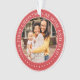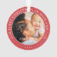 Este diseño sencillo y clásico se compone de tipografía de la serif y se agregan dos fotos personalizados. "Nuestra primera Navidad como mamá y papá" rodea la foto del personalizado.