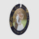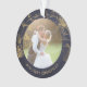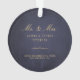Elegante estilo vintage recién casados Primera Navidad como Mr. y Mrs. adornado con adorno personalizado de árbol de keepsake con un falso guión de tipografía de oro y follaje dorado y hojas sobre un oscuro fondo azul marino. ++++++++ Un regalo de bonito para una nueva pareja de bodas.