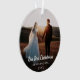 ¿Te casaste este año? Añada un recuerdo a su árbol con este moderno adorno acrílico que presenta un diseño simple y elegante con el mensaje "Nuestra primera Navidad como Sr. y Sra." en escritura tiza blanca junto con el año, sobre su foto favorita. Añada la misma foto a ambos lados o a uno diferente a cada lado. Este adorno es también un gran regalo para una pareja recién casada por su primera Navidad.