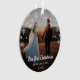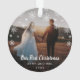 ¿Te casaste este año? Añada un recuerdo a su árbol con este moderno adorno acrílico que presenta un diseño simple y elegante con el mensaje "Nuestra primera Navidad como Sr. y Sra." en escritura tiza blanca y copos de nieve junto con el año, sobre su foto favorita. Añada la misma foto a ambos lados o a uno diferente a cada lado. Este adorno es también un gran regalo para una pareja recién casada por su primera Navidad.