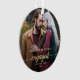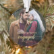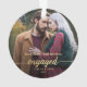 Un regalo de Navidad memorable para los recién contratados. Envíe esta hermosa foto de Navidad a la recién comprometida pareja para conmemorar su primera Navidad como una pareja comprometida. El adorno presenta un color "comprometido" con una bonita letra de color dorado con letras a mano, con espacio para dos fotos diferentes, una en la parte delantera y la otra en la parte trasera. Personalice el ornamento reemplazando las fotos, los nombres y el año.