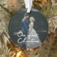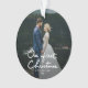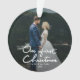 Un regalo elegante del navidad para los recienes casados. Envíe este ornamento hermoso de Navidad de la foto a los recienes casados para conmemorar su boda, para su primer navidad como Sr. y señora. El ornamento ofrece "nuestro primer navidad" en una fuente blanca maravillosamente mano-indicada con letras del color con el espacio para una foto. Personalice el ornamento substituyendo la foto, el apellido y el año. Para los mejores resultados, utilice una foto que se coseche a una forma cuadrada. Más estilos y productos a juego tienen gusto de tarjetas del día de fiesta de la foto, de sellos, del papel de envoltorio para regalos, del etc. están también disponibles en nuestra tienda.