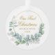 Elegante moderno Nuestra primera acuarela de Navidad Eucalyptus deja vegetación, Ornamento Círculo de Oro - Guión de Oro, Foto De Vuelta