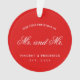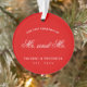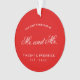 ¿Te casaste este año? Añade un recuerdo a tu árbol de Navidad con este adorno de boda con un toque de honor con el mensaje "Nuestra primera Navidad como Sr. y Sr." en blanco sobre un fondo rojo. Use la plantilla para agregar sus nombres y el año de su boda al frente y su foto favorita al reverso. Este elegante adorno navideño hace un gran regalo a una pareja gay recién casada para su primera Navidad.