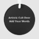 An artistic deer design with a playful “cult of the tree” twist for a creative holiday style.