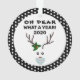 Muestra tu lado del humor con este ornamento de renos "Oh Queridos Navidades de un año" 2020. Ambos lados están diseñados con una cara graciosa de reno con una máscara facial Covid-19. El dicho humorístico es "Oh querido qué año" seguido por "2020". El fondo son puntos de polka negros y blancos. Hace una idea de regalo perfecta para amigos y familiares.