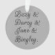 Un diseño lindo, perfecto para cualquiera que ame las novelas de Jane Austen. Parejas de Orgullo y Prejuicio "Lizzy & Darcy & Jane & Bingley" con un fondo gris. ¡Acentúa tu estilo y espacio con este bonito arte!