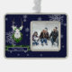 Decore su árbol esta temporada de vacaciones con un reno azul enmarcado como adorno de Navidad. El diseño ornamental incluye un reno festivo con una corona de Navidades adornada con bayas y copos de nieve que caen y una caja de saludo de vacaciones decorada con guirnaldas y marcos de vacaciones que pueden añadir fotos familiares. También hay artículos de regalo y de vacaciones disponibles con este diseño.