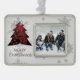 Decoren su árbol esta temporada navideña con un árbol de navidad rojo adornado con un adorno navideño. El diseño ornamental incluye un vibrante y festivo árbol de Navidad adornado con caídas de copos de nieve grises y blancos con un saludo de vacaciones y marco que puedes añadir tu propia foto familiar. También hay artículos de regalo y de vacaciones disponibles con este diseño.