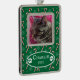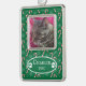Un adorno navideño verde enmarcado con un bastón de caramelo y un patrón de copo de nieve, usando una sola foto de tu gato. Añade el nombre del gatito y el año de Navidades que estás celebrando juntos. © ArianeC Ilustraciones-Todos los derechos reservados
