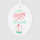 Celebrate love and new beginnings with this minimalist ceramic ornament, featuring the phrase “Our First Christmas Engaged 2025.”
