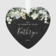 Las nieves pintadas a mano y los tallos de eucalipto forman un borde en la parte superior de este adorno con forma de corazón. Todo el texto es totalmente editable para que puedas cambiar fácilmente la redacción y cambiar el estilo de letra/color/tamaño/ubicación. Otra versión está disponible con una fotografía en la parte posterior.