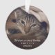 Ornamento conmemorativo mascota que presenta un diseño simple y elegante con "Forever in Our Hearts" junto con el nombre, año de nacimiento y año de muerte de su gato o perro en blanco sobre su foto favorita. La plantilla permite dos fotos diferentes, o puede usar la misma imagen en ambos lados. Este adorno vacacional es una buena manera de recordar a tu compañero de familia que ha fallecido.