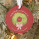 Nuestra primera Navidad como marido y mujer personalizó el adorno de sake con foto en la parte de atrás. Creado a partir de una corona de color de agua de inspiración vintage dibujada a mano y con arco. Arte original de Leslie Larson.