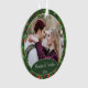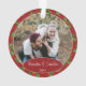 Adorno de árbol de Navidad de diciembre con espacio para personalizar o personalizar con los nombres de su elección en una elegante fuente de escritura, una foto personal y la fecha del año de su elección. Con un bonito fondo estacional de hojas de acebo verdes y bayas rojas como decoración. Recuerdo único de recuerdos que sus nietos, otros familiares o amigos amarán.
