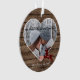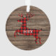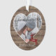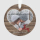 Navidades de diciembre lindo adorno de árbol de vacaciones con espacio para personalizar o personalizar con los nombres de su elección en un guión elegante de letra, una foto personal y la fecha del año de su elección. Enmarcado por una elegante forma cardíaca en una casa de campo rústica o con un fondo de madera de madera de la cabaña de troncos. Recuerdos únicos mantienen que a tu otra mitad le encantará!