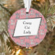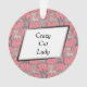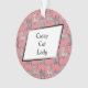 Un patrón de gatos gráficos inspirados en un diseño retro en un estilo moderno de mediados del siglo XX popular en los años 1950 y 1960 decora este adorno. Un regalo perfecto para la loca dama del gato en tu vida.